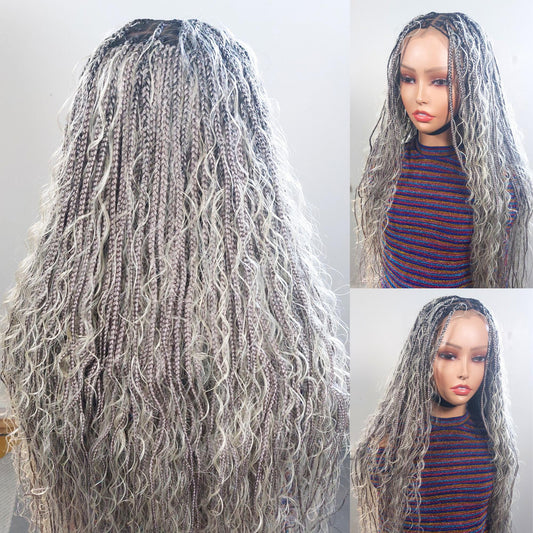 Braided Wigs For Black Women Knotless Braid Wig: Boho Goddess Locs, Curly Black Human Hair Blend
