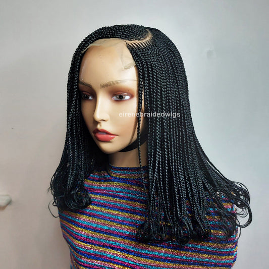 Short bob braids wig for black women, blunt-cut light-weight side-part lace-front afro conrow hair, 10inch single box braids human hair wig