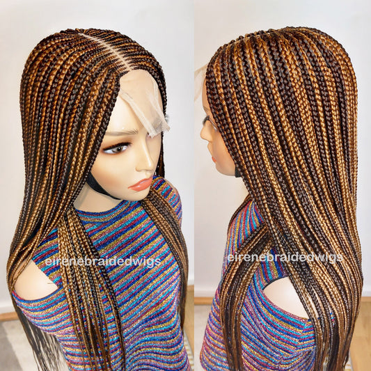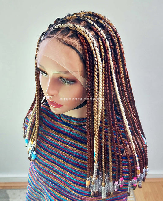 Braided Wigs For Black Women 24" Braided Wig: Red Gold Brown Conrow, Lace Frontal