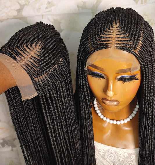 Braided Wigs For Black Women Handmade Braided Wig: Conrow Weave, 2x4 Lace Closure