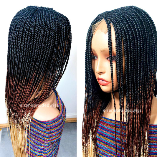 Knotless Single Box Braided Wig For Black Women, Ombre lace closure human hair twist braid wig