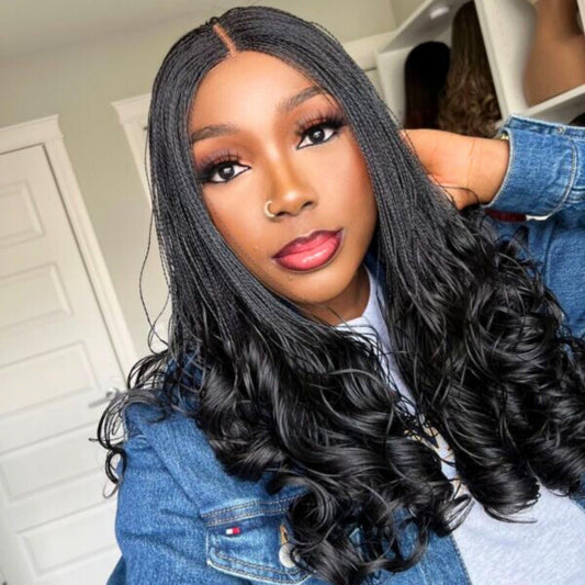 Braided Wigs For Black Women Lace-Front Micro Braided Wig: Boho Deep-Wave Passion Twist