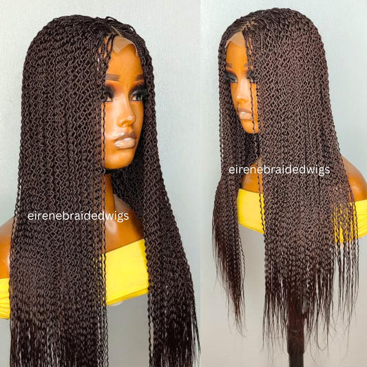 Braided Wigs For Black Women Braided Wig, Brown Crinky Twist Million Braids, Lace Closure