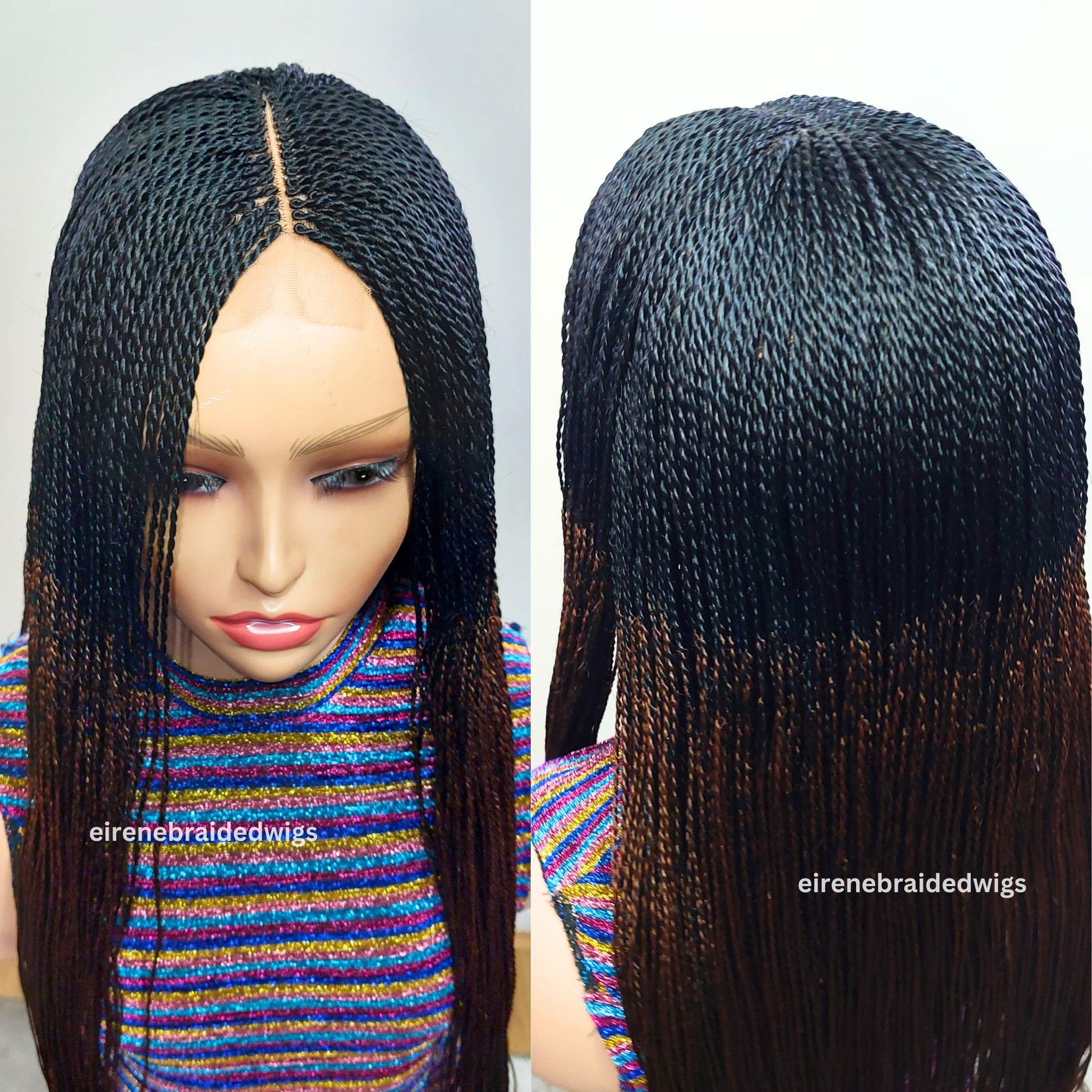 Micro Twist Braided Wig, long black brown lightweight glueless ombre million braids