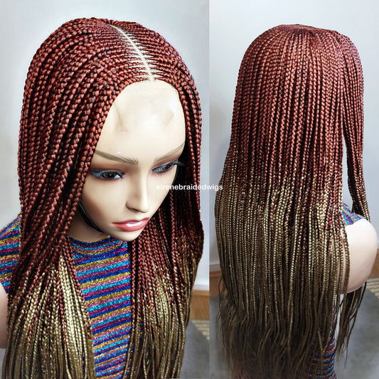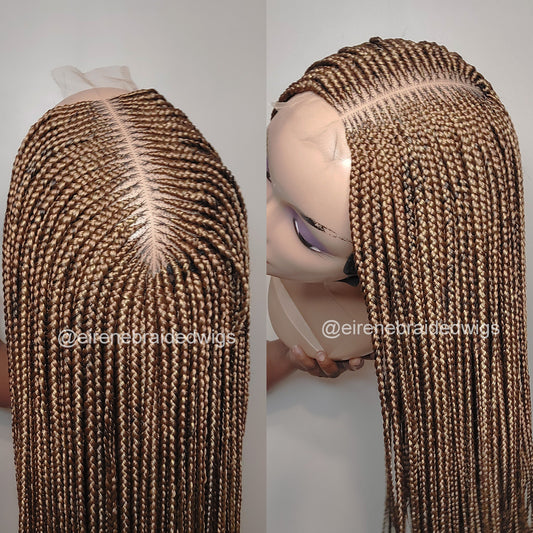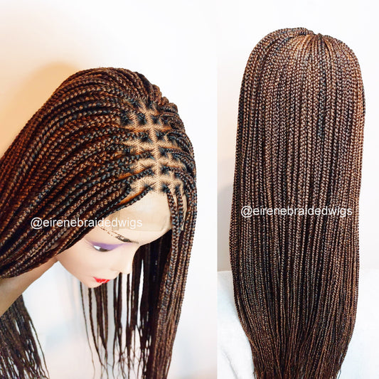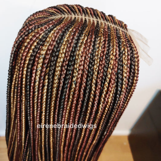 Knotless box braided wig, Gold african single braids, 26inches full lace human hair wig