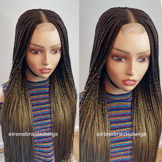 C-Cut Lace Frontal Conrow, Glueless Side-Part Long Red Gold Black Rainbow Braids Wig