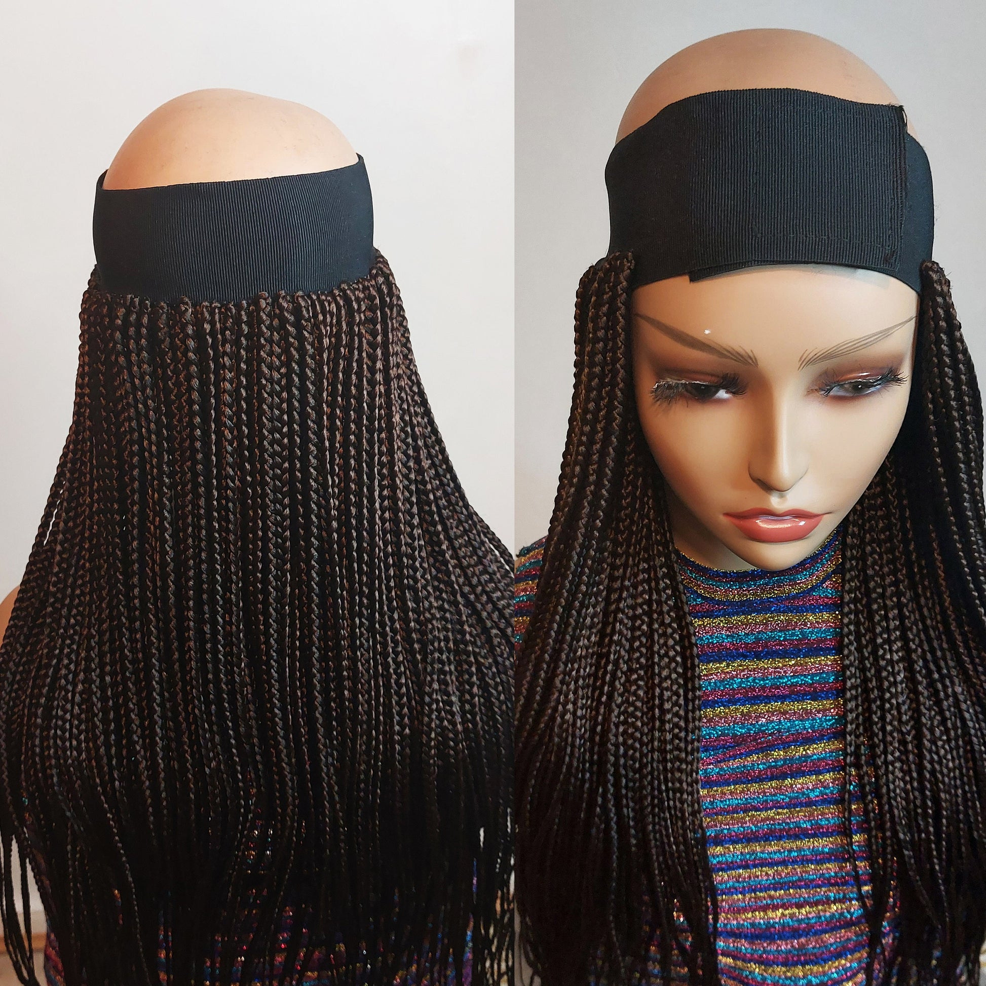 Handmade braided headband wig. Hand Made and attached to the face hat firmly. Perfect for a quick errand and other extracurricular activities. Fits most head size.