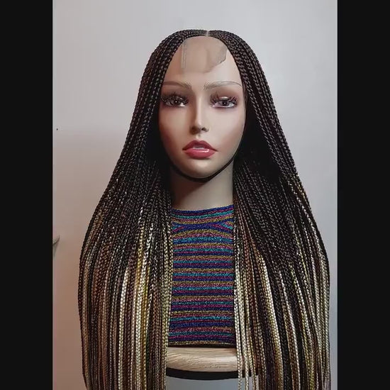 Braided Wigs For Black Women Long Fulani Braided Wig: Brown Ombre, 2x4 Lace Closure